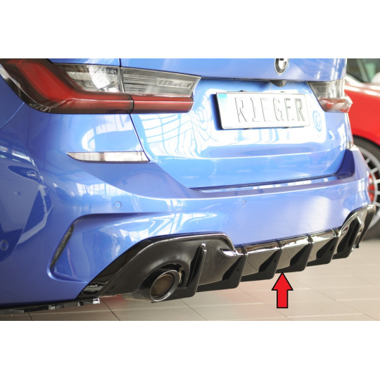 Vložka zadního nárazníku Rieger Tuning určená pro BMW řada 3 Typ G21, karoserie touring, od 03/2019–. Vyrobena z ABS plastu lakovaného do černé lesklé barvy. Součástí balení je montážní materiál.