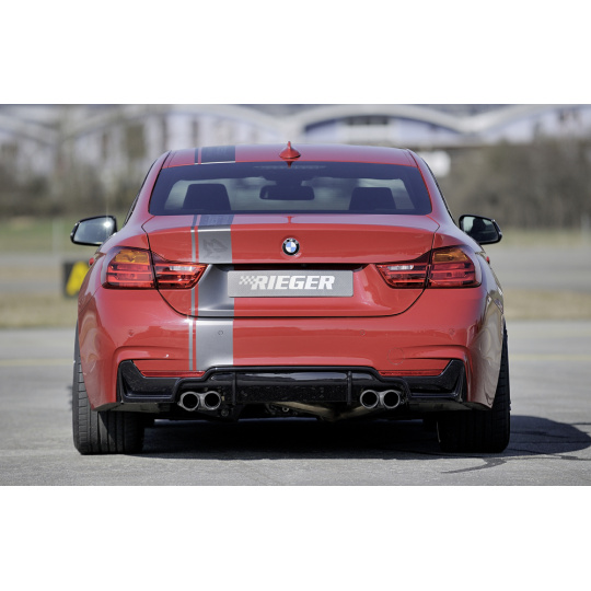 Rieger vložka zadního nárazníku pro BMW řada 4 F32, F33, F36 coupe (3-dvéř.), gran coupe (5-dvéř.), kabriolet vč. faceliftu, plast ABS lakovaný do černé lesklé barvy, pro dvojité koncovky na obou stranách 4x80 mm (435i/440i look)