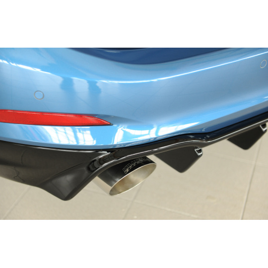 Rieger vložka zadního nárazníku pro Ford Focus 4 DEH 5-dvéř. (combi), plast ABS lakovaný do černé lesklé barvy, pro sportovní koncovky vlevo/vpravo 115 mm