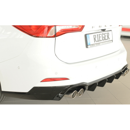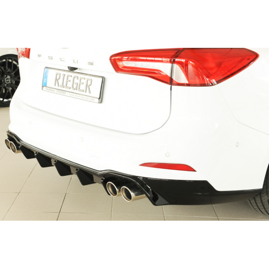 Rieger vložka zadního nárazníku pro Ford Focus 4 DEH 5-dvéř. (combi), plast ABS lakovaný do černé lesklé barvy, pro sportovní koncovky vlevo/vpravo 4x80 mm