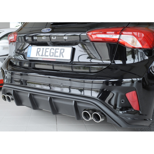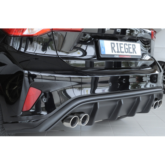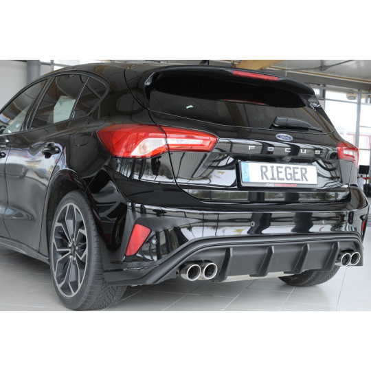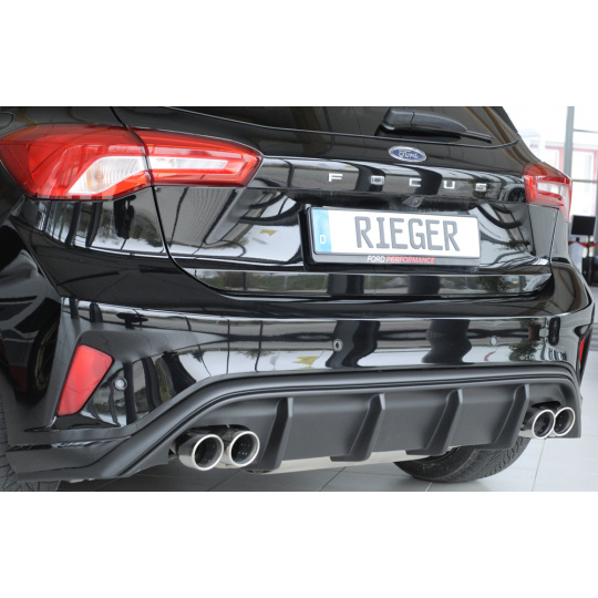 Rieger vložka zadního nárazníku pro Ford Focus 4 DEH, ST 5-dvéř. (hatchback), plast ABS bez povrchové úpravy, pro dvojité koncovky na obou stranách 4x80 mm