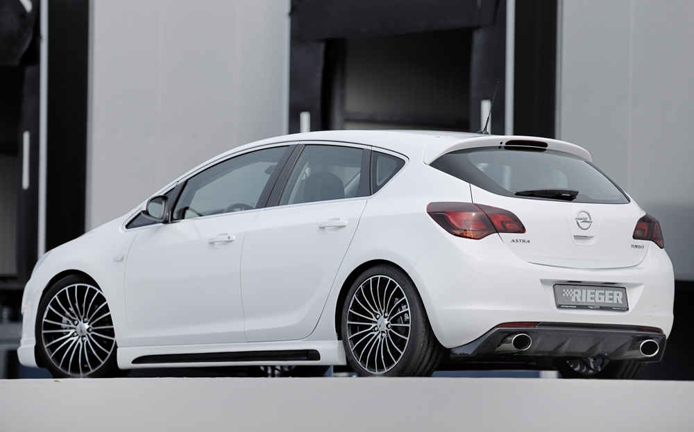 Vložka zadního nárazníku Rieger Tuning určená pro Opel Astra J, karoserie 5-dvéř. hatchback před faceliftem, pro roky výroby 11/2008–09/2012. Vyrobena z ABS plastu s povrchovou úpravou Carbon-Look. Součástí balení je montážní materiál.