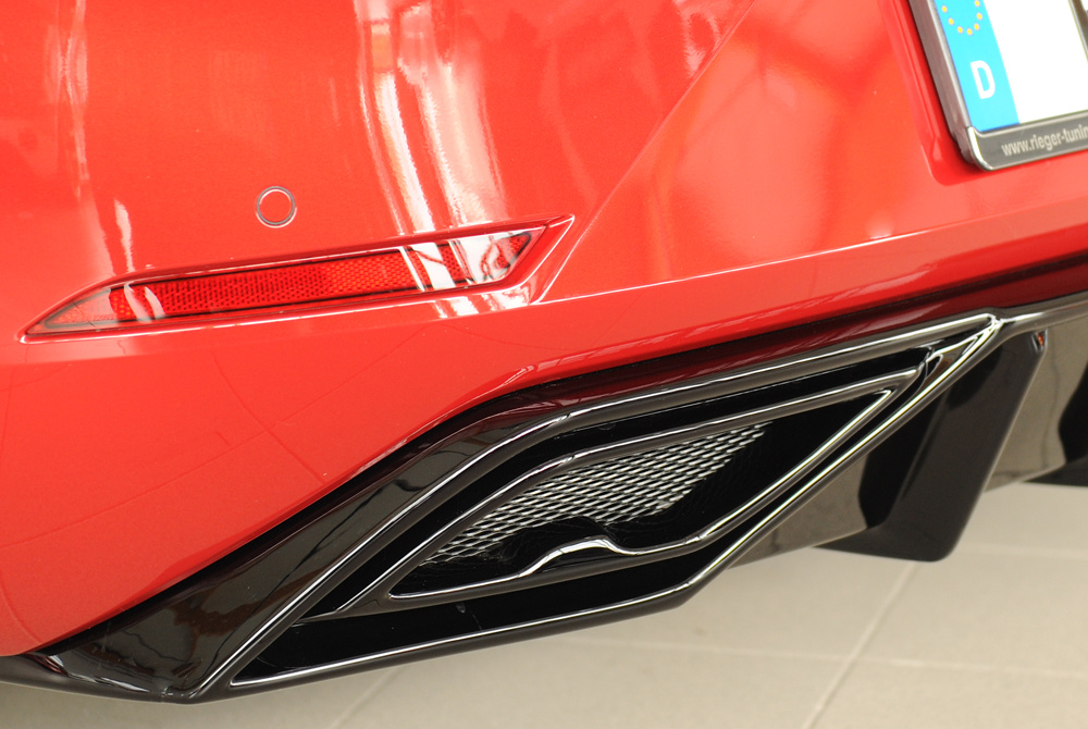Rieger vložka zadního nárazníku pro orig. koncový tlumič výfuku pro Seat Leon KL 5-dvéř., 04/20-, plast ABS lakovaný do černé lesklé barvy, mont. strana