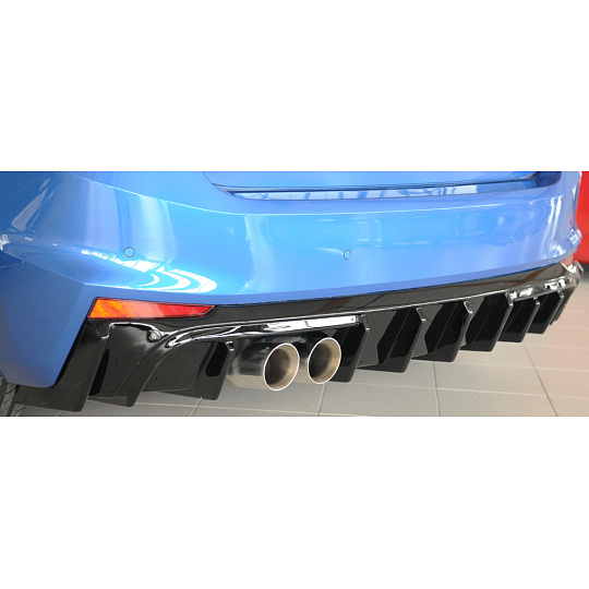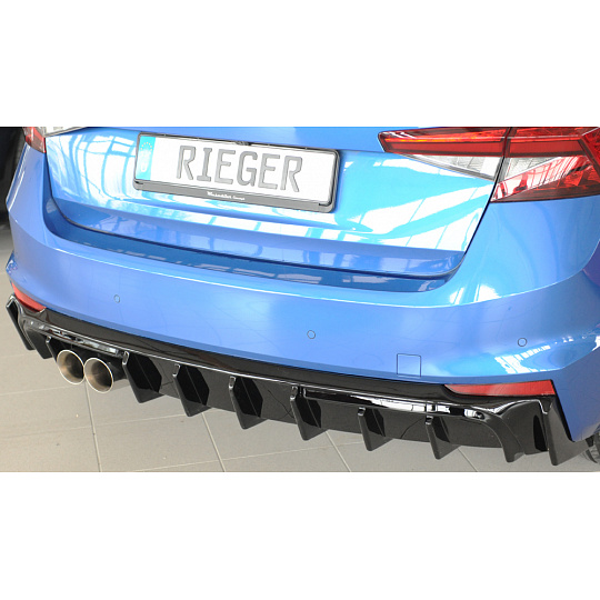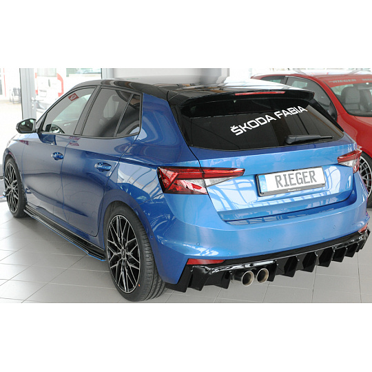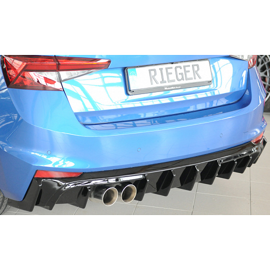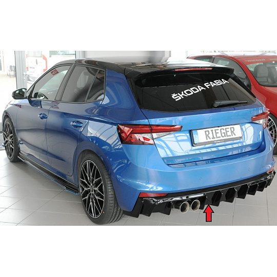 Rieger vložka zadního nárazníku pro orig. koncový tlumič výfuku pro Škoda Fabia PJ hatchback, 06/21-, plast ABS lakovaný do černé lesklé barvy, mont. strana