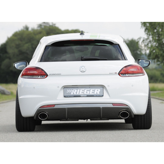 Rieger Tuning vložka zadního nárazníku pro R-Line zadní nárazník pro vozy Volkswagen Scirocco 3 typ 13, karoserie 2-dvéřová, včetně faceliftu. Určeno pro modelové roky 08/2008–04/2014 a od 05/2014. Vyrobeno z ABS plastu s povrchovou úpravou Carbon-Look. Součástí balení je montážní materiál.