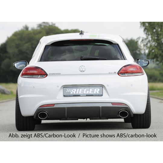 Rieger vložka zadního nárazníku pro R-Line zadní nárazník pro Volkswagen Scirocco R 13 2-dvéř. vč. faceliftu, plast ABS bez povrchové úpravy, pro orig. koncovky na obou stranách