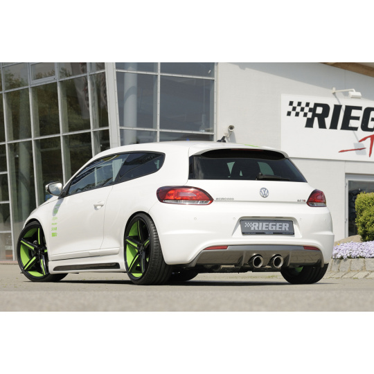 Rieger Tuning vložka zadního nárazníku určená pro zadní nárazník ve stylu R-Line. Díl je vhodný pro vozy Volkswagen Scirocco R, typ 13, karoserie 2-dvéřová, včetně faceliftu. Pasuje na modely 11/2009–04/2014 a od 05/2014. Součástí balení je montážní materiál.