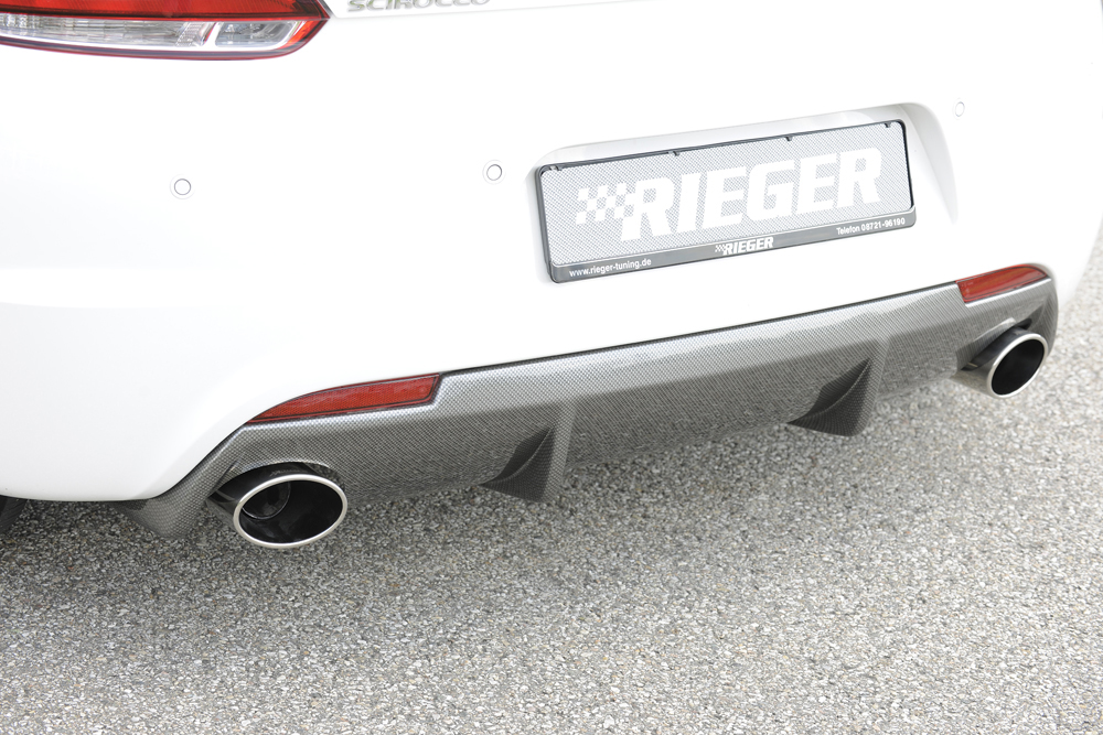 Rieger vložka zadního nárazníku pro R-Line zadní nárazník pro Volkswagen Scirocco R 13 2-dvéř. vč. faceliftu, plast ABS s povrchovou úpravou Carbon-Look, pro orig. koncovky na obou stranách