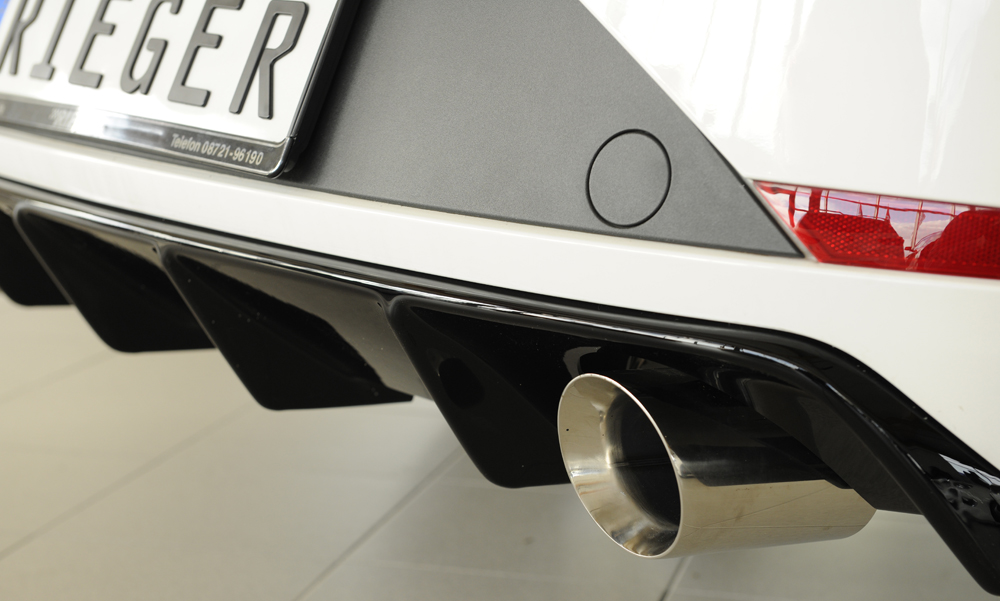 Rieger vložka zadního nárazníku pro Seat Leon FR 5F 5-dvéř. (ST/Combi) po faceliftu, plast ABS lakovaný do černé lesklé barvy, pro sportovní koncovky na obou stranách o průměru 100mm