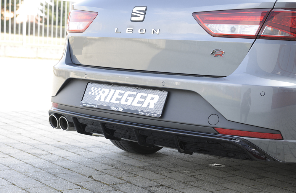 Rieger Tuning vložka zadního nárazníku pro vozy Seat Leon FR, typ 5F před faceliftem, karoserie 5-dvéř. (ST/Combi), v období 01/2013–12/2016, v provedení černý lesk.