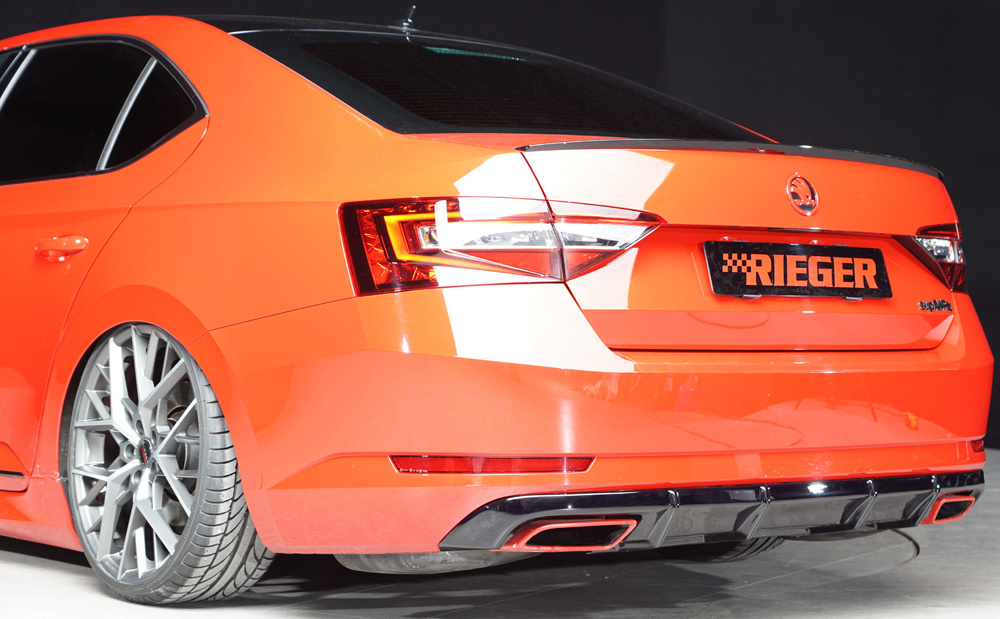 Rieger Tuning vložka zadního nárazníku – Škoda Superb III (Typ 3T, 3V vč. faceliftu) combi, sedan 03/2015–10/2018 a 11/2018–… – černá lesklá