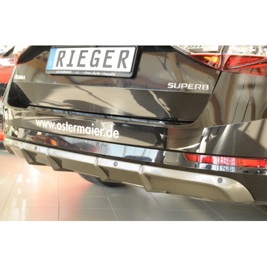 Rieger Tuning vložka zadního nárazníku – Škoda Superb III (Typ 3T, 3V vč. faceliftu) combi, sedan 03/2015–10/2018 a 11/2018–… – Carbon-Look