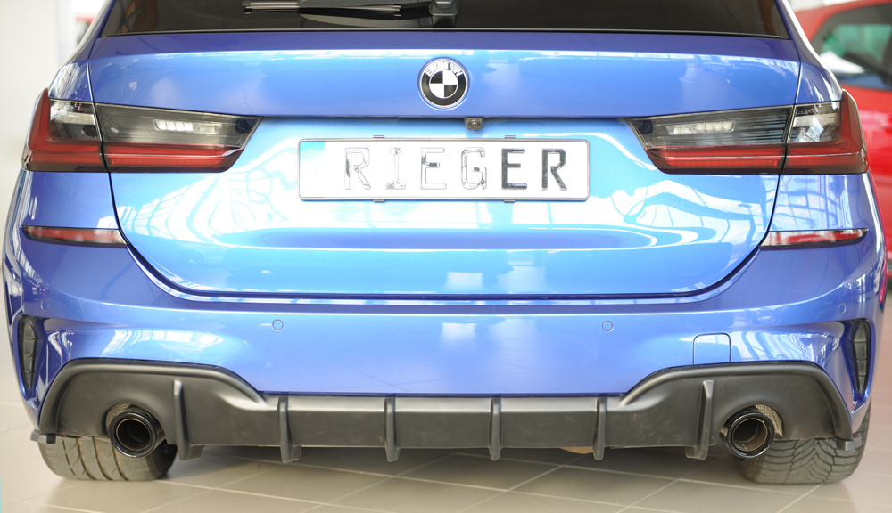 Vložka zadního nárazníku Rieger Tuning určená pro BMW řada 3 Typ G21, karoserie Touring, roky od 03/19. Varianta je určena pro vozy s tažným zařízením. Vyrobena z ABS plastu bez povrchové úpravy. Balení obsahuje montážní materiál.