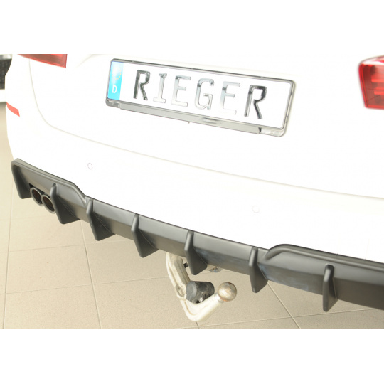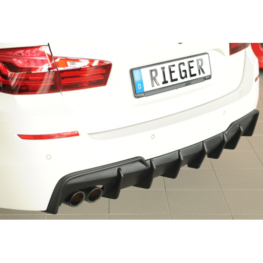 Vložka zadního nárazníku Rieger Tuning určená pro BMW řada 5 Typ F11, karoserie Touring, roky 09/10–06/13. Varianta je určena pro vozy s tažným zařízením. Vyrobena z ABS plastu bez povrchové úpravy. Balení obsahuje montážní materiál.