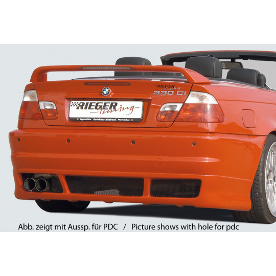 Rieger zadní nárazník pro BMW řada 3 E46 kabriolet, kupé, sedan po faceliftu, plast ABS bez povrchové úpravy, pro vozy bez parkovacího asistenta (PDC)