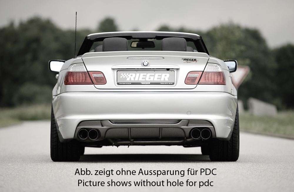 Rieger zadní nárazník pro BMW řada 3 E46 kabriolet, kupé, sedan před faceliftem, plast ABS bez povrchové úpravy, pro vozy s parkovacím asistentem (PDC)