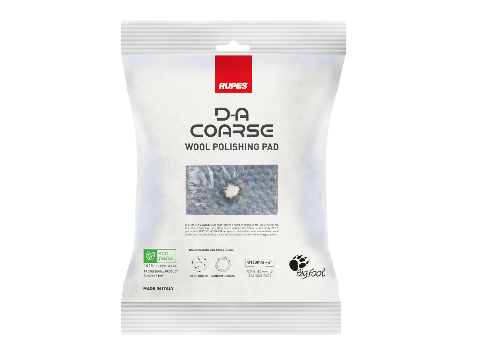 RUPES D-A Coarse Wool Polishing pad - vlněný korekční kotouč, průměr: 160 mm
