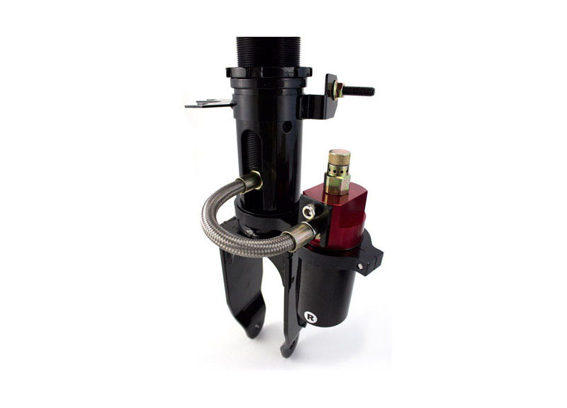 - Přední tlumiče: Sadu jednoplášťových tlumičů s externí nádobkou a samostatně nastavitelnou tuhostí stlačení i roztažení.