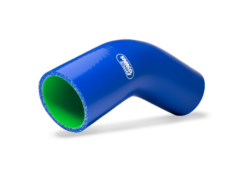Samco Sport ProFuel silikonové redukční koleno 45° s vnitřním průměrem 70 mm > 60 mm pro vedení paliva, barva: modrá