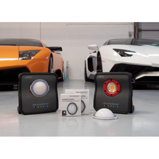 Používání SCANGRIP DIFFUSER společně s MULTIMATCH 8 výrazně zvyšuje funkčnost pracovního světla, protože difuzor změkčuje a rozptyluje světlo na povrchu automobilu, takže se vyhnete prudkému světlu a ostrým stínům.