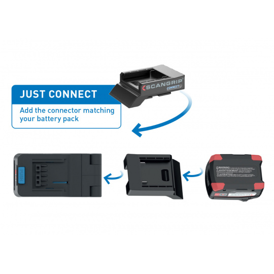 Extrémně výkonné pracovní světlo DUO CONNECT se světelným výkonem až 2500 lumenů. Světelný výkon lze upravit ve 2 nastaveních osvětlení, 50 % a 100 % v závislosti na aktuální úloze. DUO CONNECT je kompatibilní s METABO / CAS bateriovým systémem 18 V a všemi ostatními 18 V/20 V bateriovými sadami předních značek elektrického nářadí pomocí SCANGRIP CONNECTOR. Kromě toho lze SCANGRIP POWER SUPPLY použít pro přímé napájení poskytující neomezenou dostupnost světla.