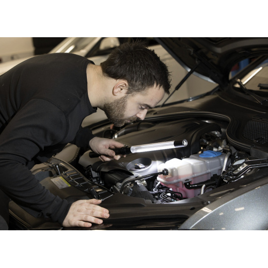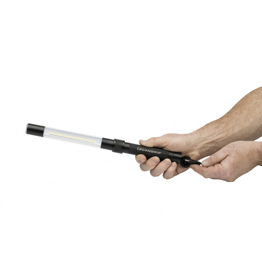 SCANGRIP LINE LIGHT R - je mimořádně výkonné inspekční světlo a svítilna v jednom. Světelný tok až 400 lumenů. LINE LIGHT R svým štíhlým designem (25 mm) je možné osvětlit i ty nejužší a těžko přístupné oblasti. Koncentruje světlo v úhlu 75°, což zajišťuje extrémně jasné a silné osvětlení celého pracovního prostoru. K dispozici je pružný krk se silným vestavěným magnetem nebo přísavný držák jako optimální příslušenství.