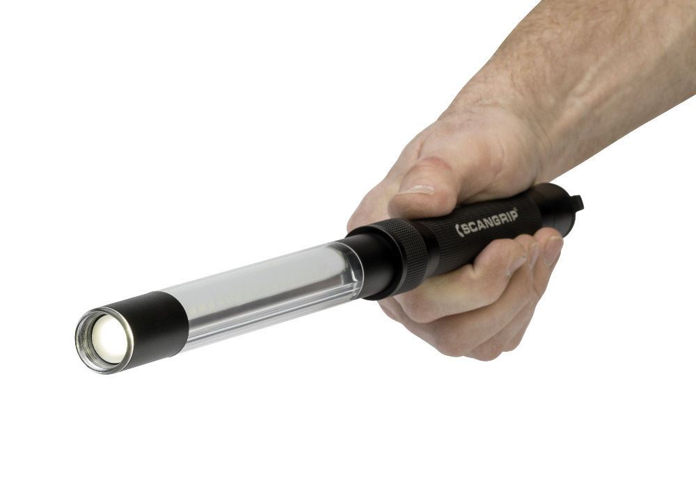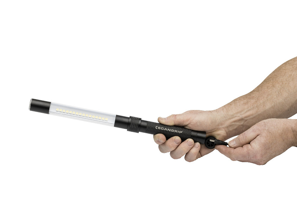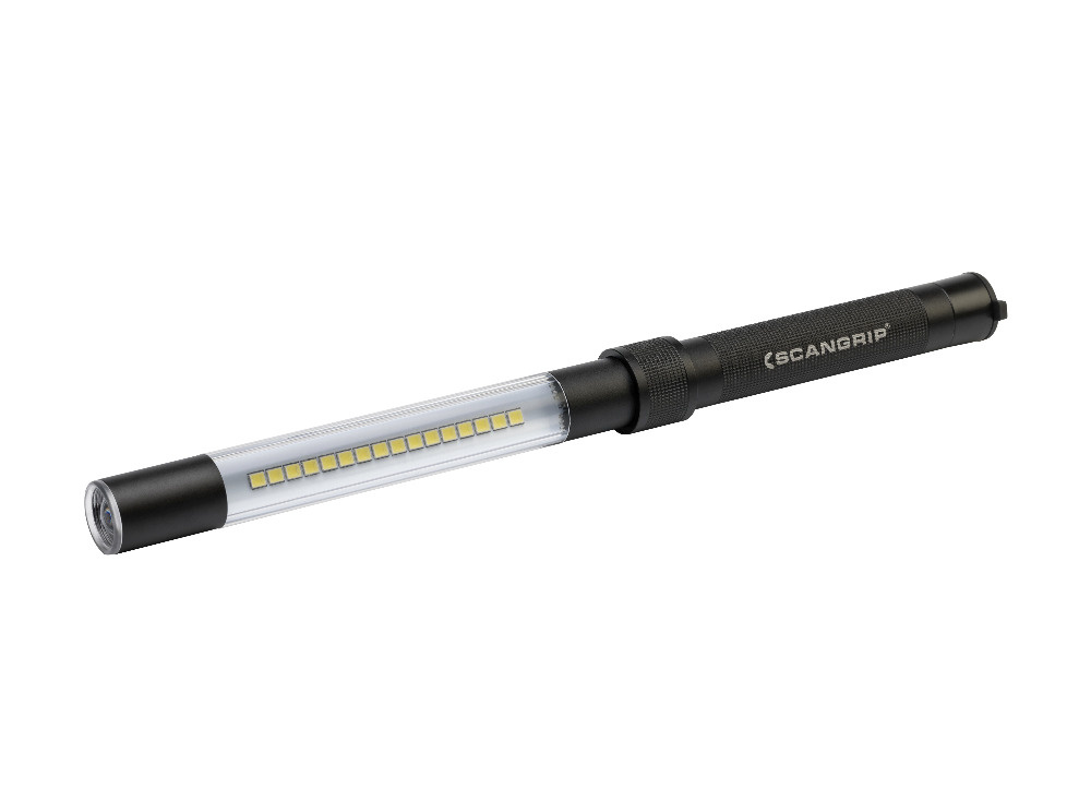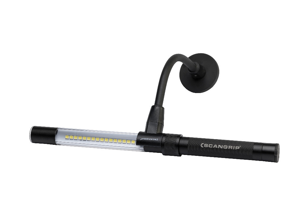 SCANGRIP LINE LIGHT R - je mimořádně výkonné inspekční světlo a svítilna v jednom. Světelný tok až 400 lumenů. LINE LIGHT R svým štíhlým designem (25 mm) je možné osvětlit i ty nejužší a těžko přístupné oblasti. Koncentruje světlo v úhlu 75°, což zajišťuje extrémně jasné a silné osvětlení celého pracovního prostoru. K dispozici je pružný krk se silným vestavěným magnetem nebo přísavný držák jako optimální příslušenství.
