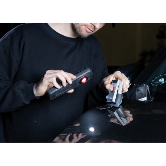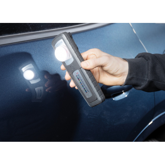 Díky vestavěnému klipu s magnetem jej můžete používat kdykoli a kdekoli potřebujete provést inspekci a kontrolu laku, hledat jeho defekty, jako jsou škrábance, skvrny, naleptání, či barevné nedokonalosti. Flexibilní hlava lampy se může otáčet o 180°, a tak si můžete lampu kdykoli přichytit ke kovovému povrchu a nasměrovat přesně podle Vašich potřeb! Na zadní strané navíc naleznete praktický, robustní, otočný hák na zavěšení.
