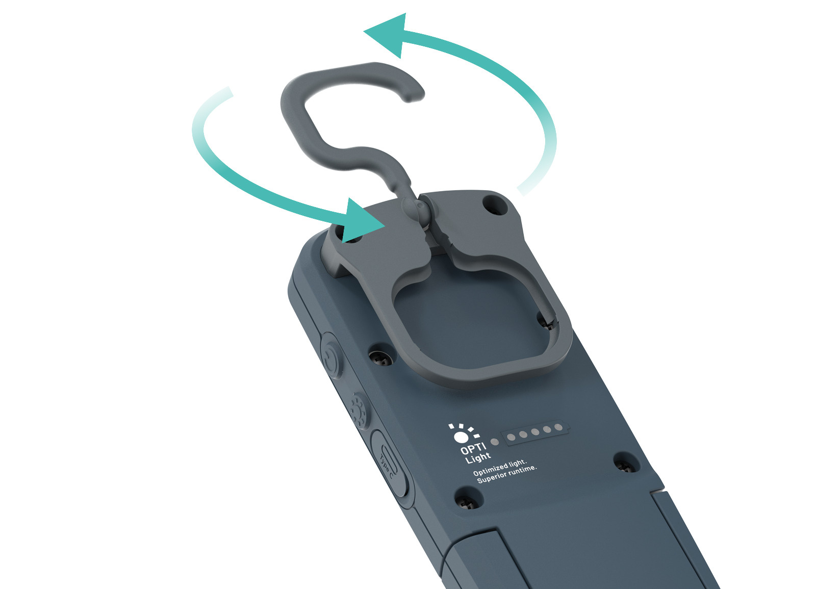 Kompaktní a flexibilní design s otočným háčkem, vestavěným magnetem a klipem
