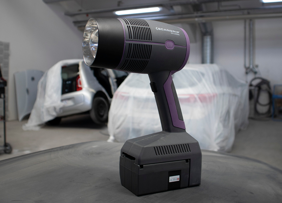 Díky vysoce kvalitním součástkám a aktivnímu chlazení má UV-GUN dlouhou životnost a udržuje vysokou úroveň výkonu po celý den. Během vytvrzování nevzniká na dílu ani na laku žádné teplo, což umožňuje vytvrzování plastových dílů nebo jakéhokoli materiálu citlivého na teplo. Dodáváno v praktické tašce, včetně výměnné baterie SPS, nabíječky SPS a ochranných brýlí proti UV záření.