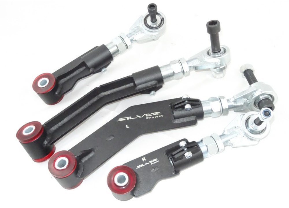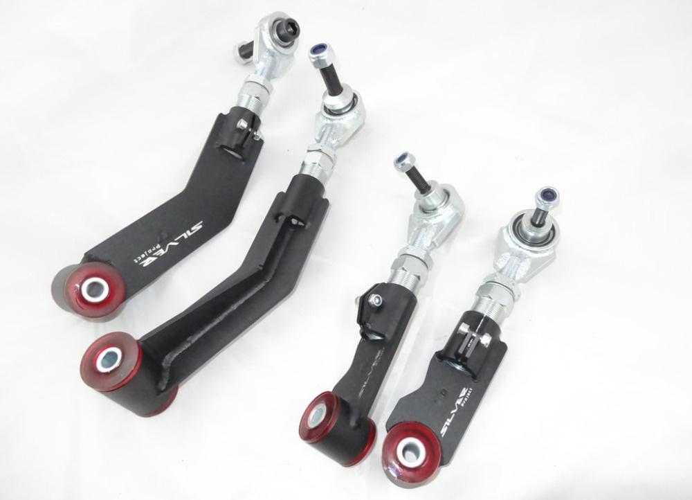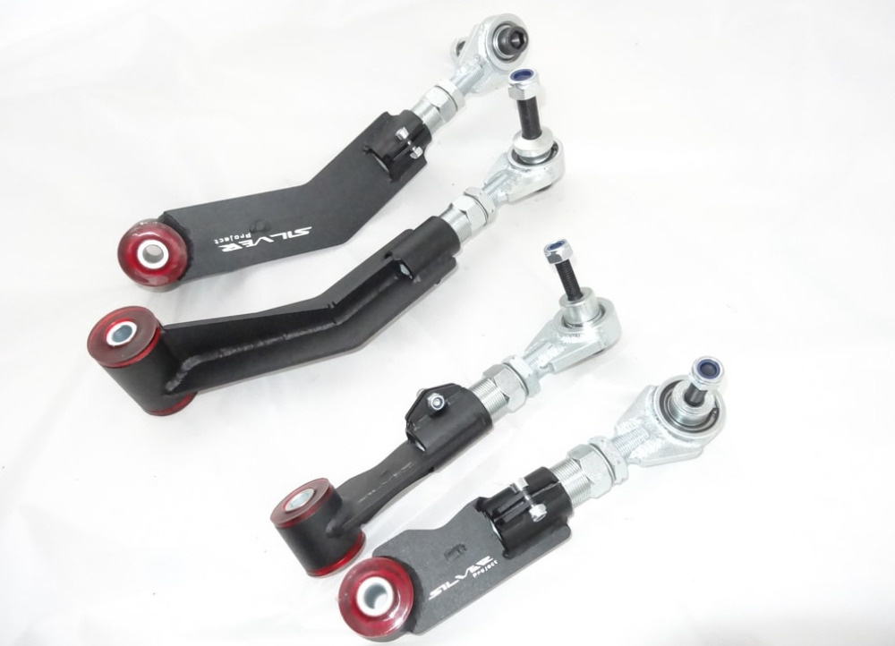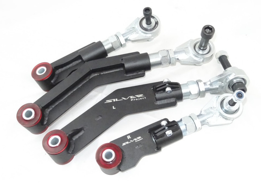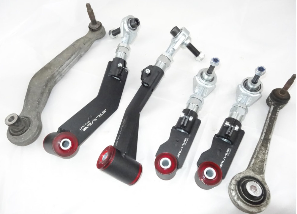 Zadní ramena Silver Project pro BMW E38 umožňují nastavení odklonu zadních kol až po -5 stupňů. Jsou také osazena polyuretanovými silentbloky 75 ShA.