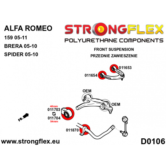 016254B: Strongflex Sada silentbloků předního zavěšení 22mm 011703 - 46mm