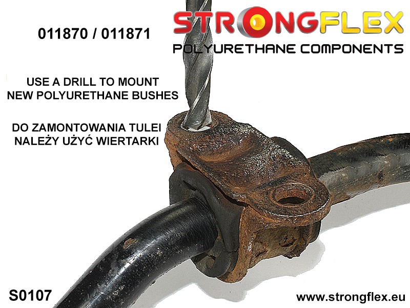 Pro instalaci nového polyuretanového silentbloku musí být svorka stabilizátoru vyvrtána. Neprovrtejte svorku!