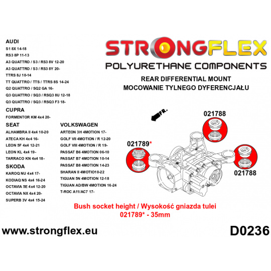 021789B: Strongflex Přední silentblok uložení diferenciálu zadní - 35mm