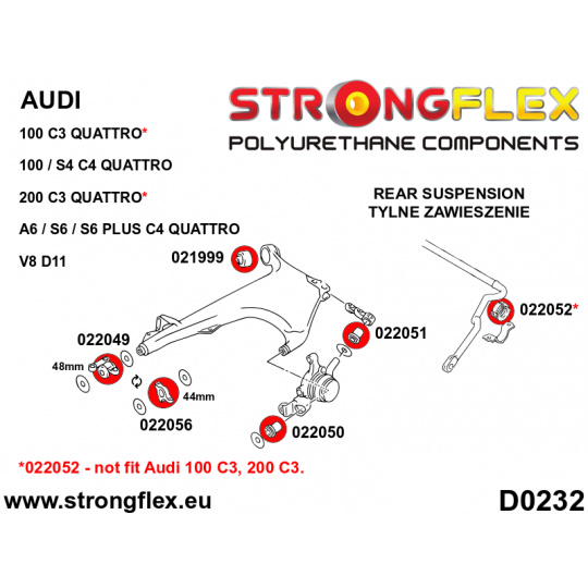 022056A: Strongflex Přední silentblok zadního spodního ramene 44mm varianta SPORT