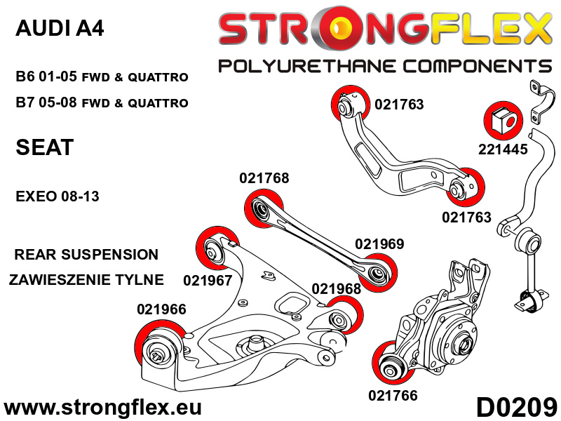026237A: Strongflex Sada silentbloků zadního zavěšení varianta SPORT