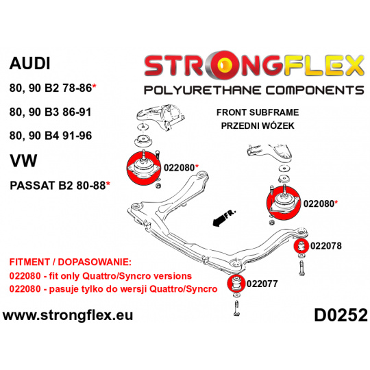 Nepasuje na modely s odlitými předními rameny. - Vyberte správný vnitřní průměr silentbloků 022077 / 022078. Můžete si vybrat silentbloky pro šroub M10 nebo M12.