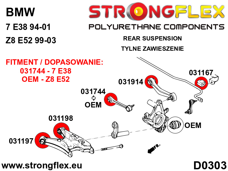 036090A: Strongflex Sada silentbloků zadního zavěšení varianta SPORT