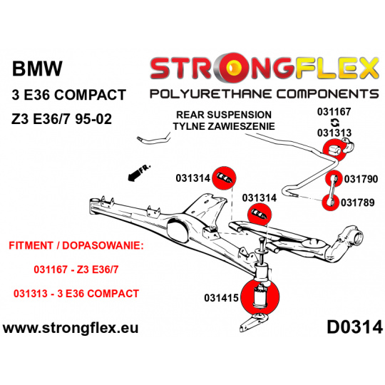 036110A: Strongflex Kompletní sada silentbloků pro zavěšení varianta SPORT 19mm 12mm 031195 - 031525 x 2 4 x 031314 standard bush