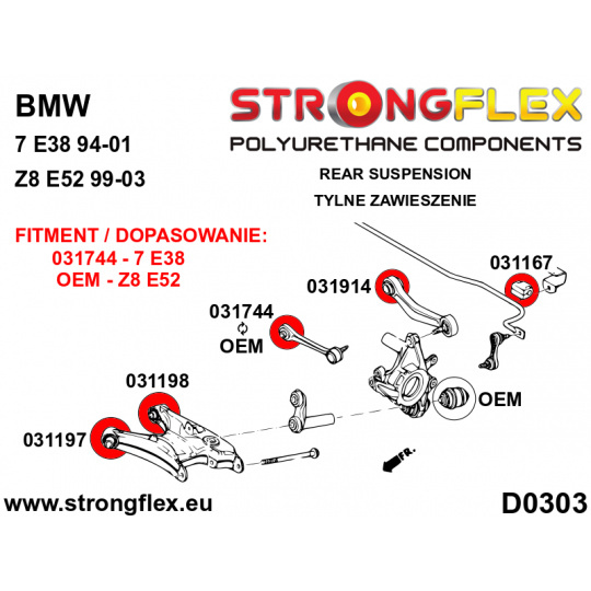 036112A: Strongflex Sada silentbloků zadního spodního ramene varianta SPORT
