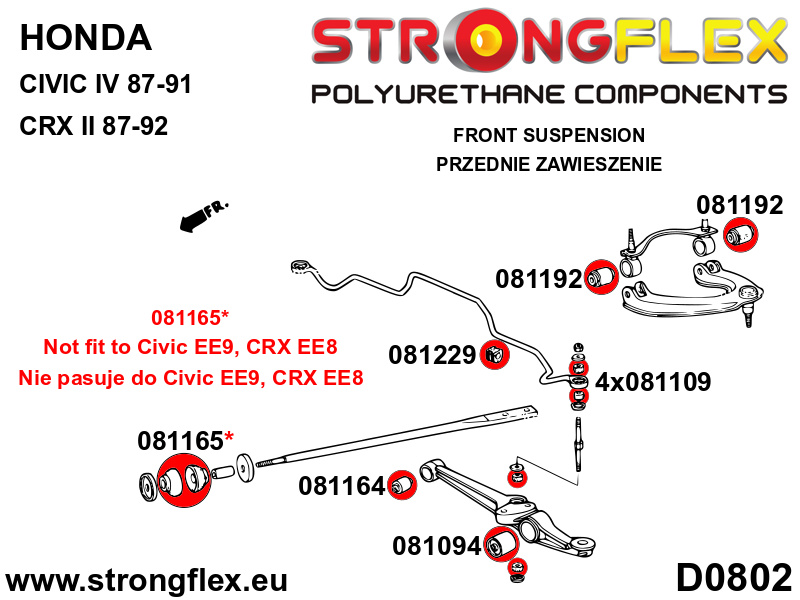 - Silentblok 081165 neodpovídá modelům Civic EE9 a CRX EE8.