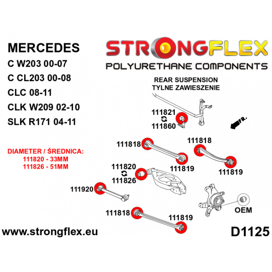 - Průměr silentbloku 33mm. Některé modely jsou vybaveny silentblokem 111826 s průměrem 51 mm. Před nákupem prosím zkontrolujte průměr.