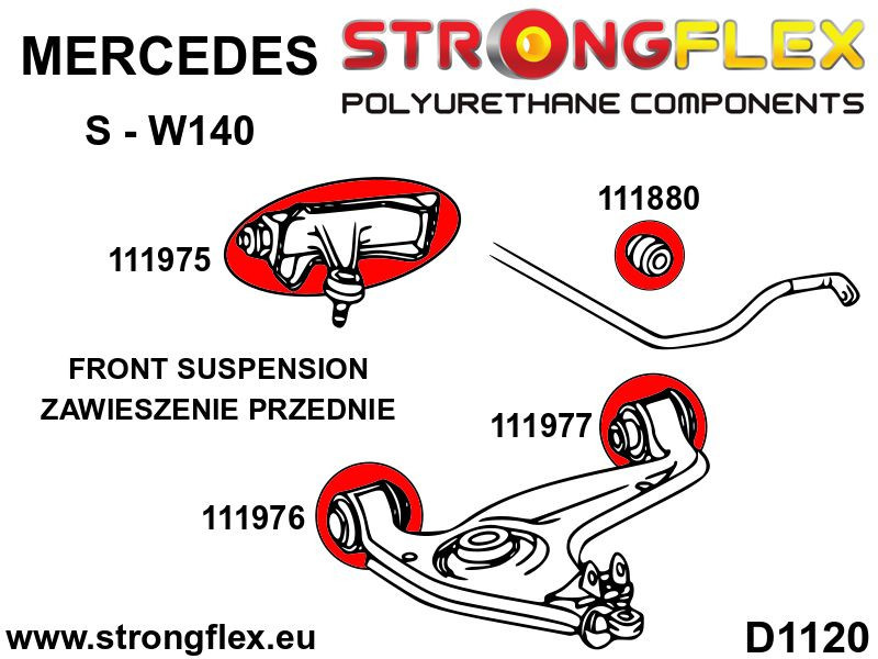 Model E-W210 má dva přední silentbloky stabilizátoru, 111814 nebo 111880.