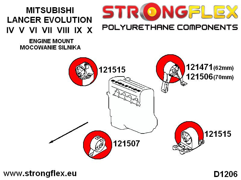 121506B: Strongflex Přední Silentblok uložení diferenciálu - spodní 70mm