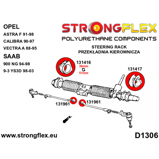 - 1 x 131416A Silentbloky uložení řízení - pravé varianta SPORT 51mm