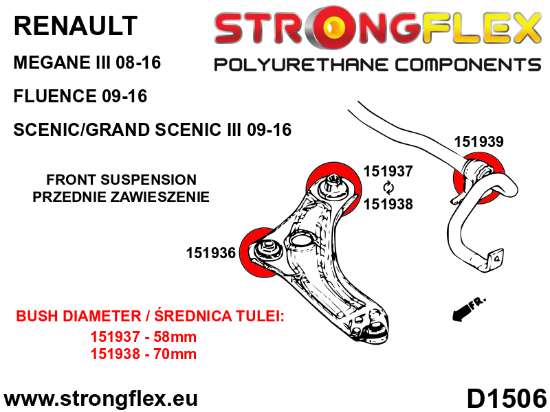 151938A: Strongflex Silentblok předního spodního ramene - zadní 70mm varianta SPORT