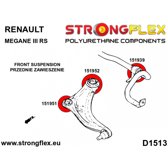 156087A: Strongflex Sada silentbloků předního zavěšení a zadního nosníku varianta SPORT