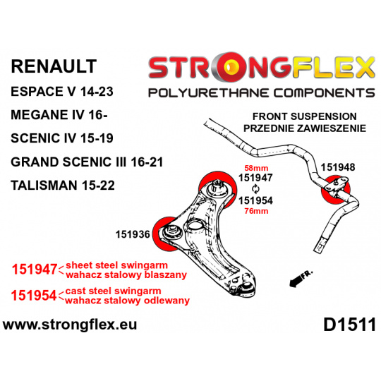156089B: Strongflex Sada silentbloků předního zavěšení 25mm 151947 - 58mm