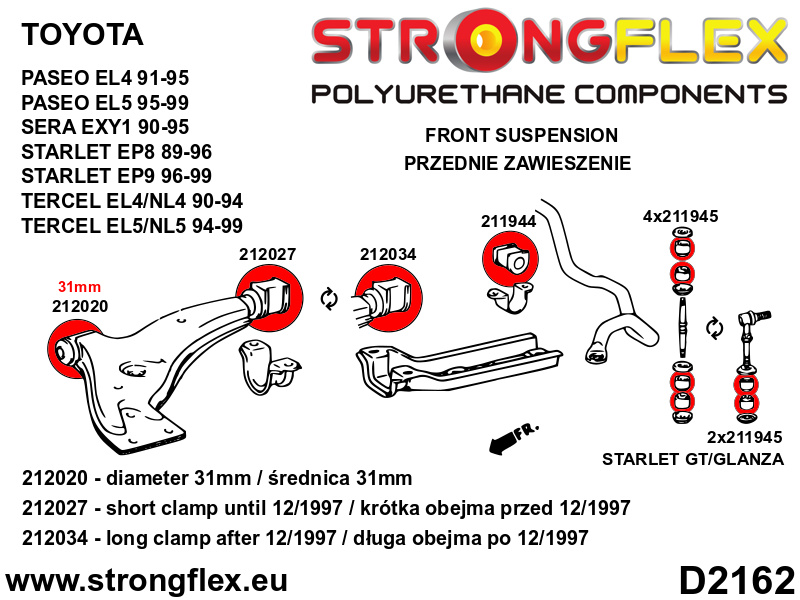 - Silentblok pasuje na dlouhé upevnění OEM č. 48652-46010 / 48659-46010 a modely vyrobené po 12/1997.