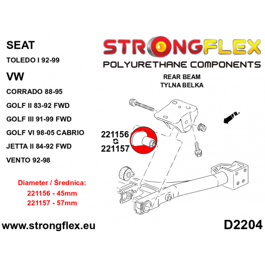 - D2204 Zadní zavěšení Belka Polyurethane Seat Toledo VW Corrado Golf Jetta Vento